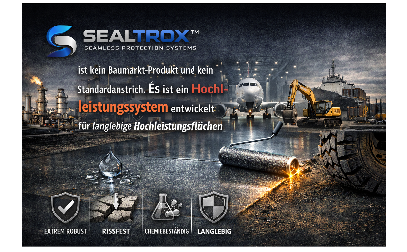 Während klassische Epoxidharz-Systeme spröde reagieren können, bleibt SEALTROX™ dauerhaft elastisch.